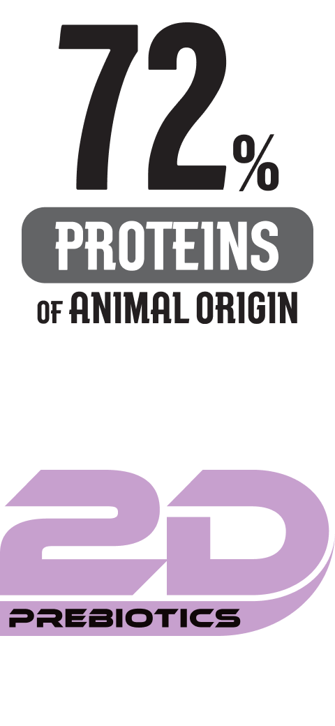 Dehydrated chicken meat 30 %, rice 26 %, corn, poultry fat, maize gluten, yeast, sugar beet pulp, lignocellulose, linseed, dehydrated whole eggs, minerals, prebiotic MOS 0,1 % & FOS 0,1 %, yucca, glucosamine, chondroitin.